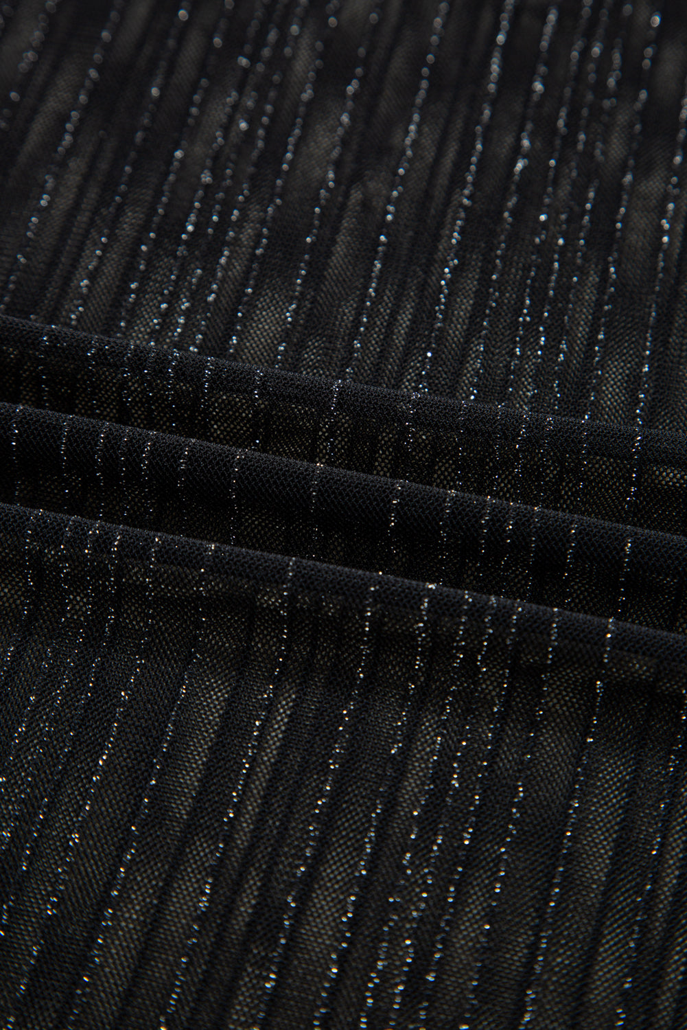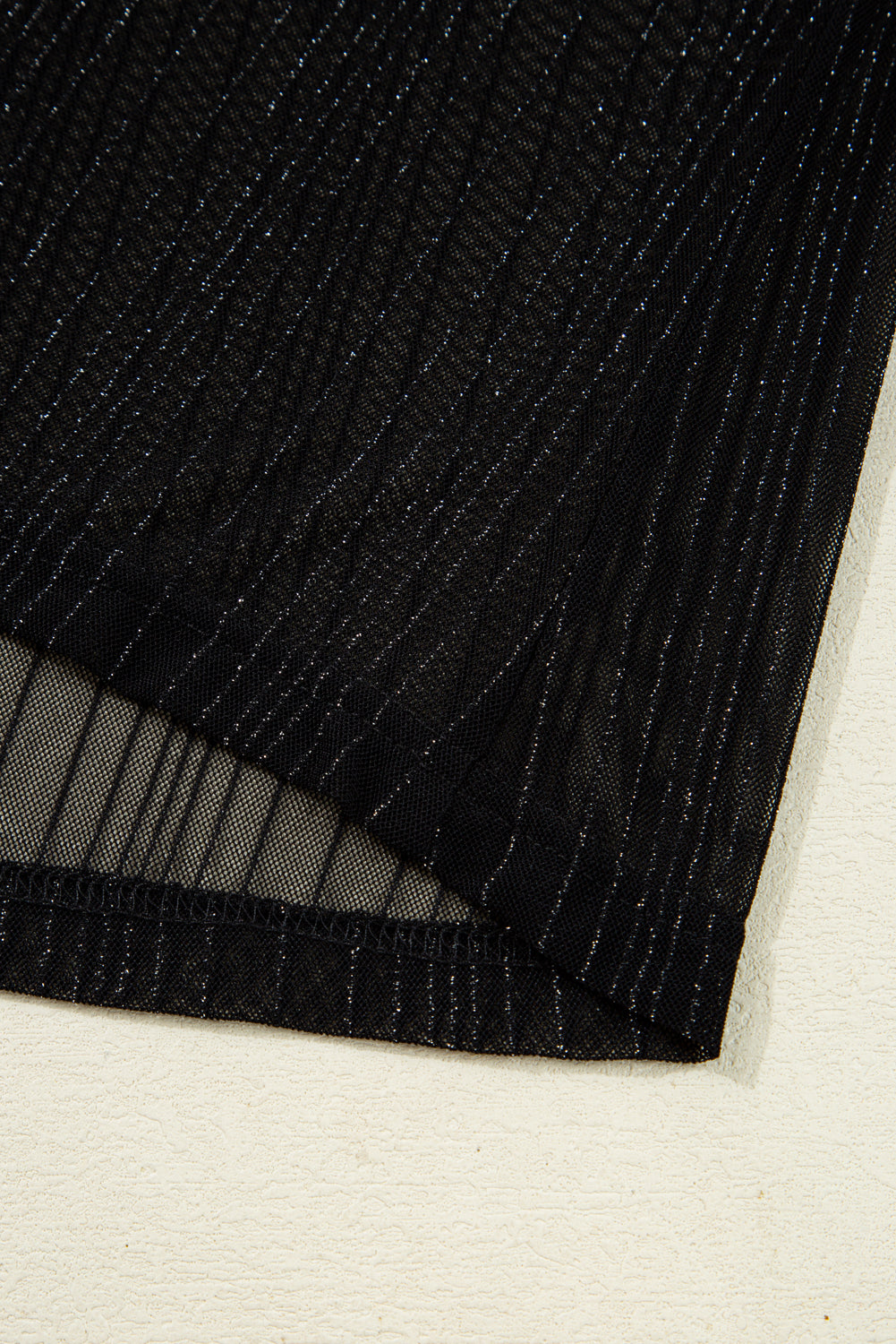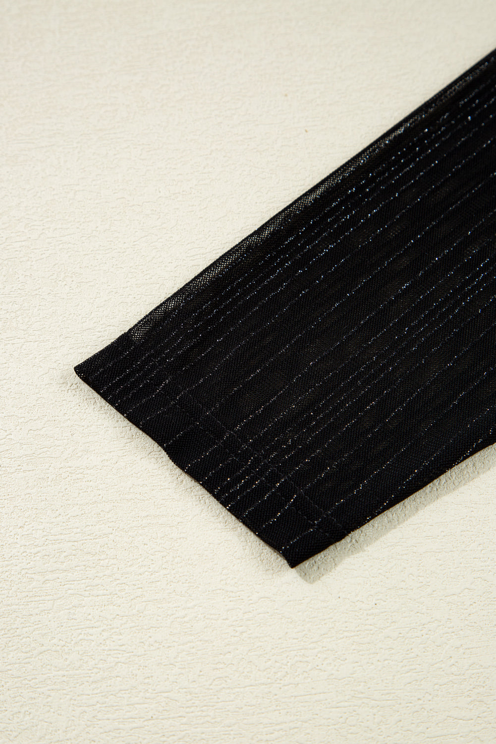 Black Plus Size Shimmer Textured Mesh Fitted Long Sleeve Top