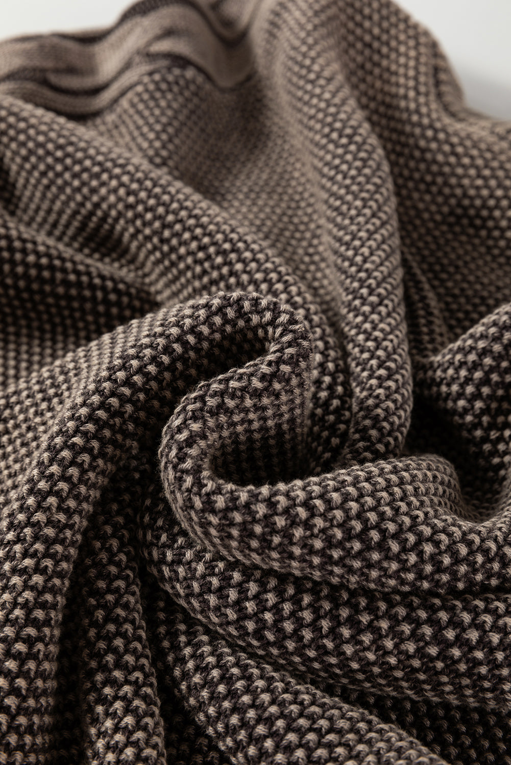 Dark Brown Contrast Cable Knit Sleeve Casual Sweater