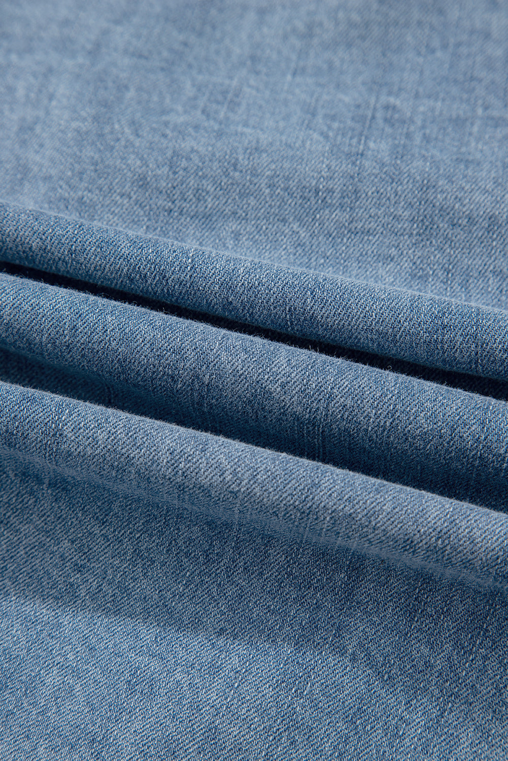 Dusk Blue Tied Front Long Puff Sleeve Denim Top