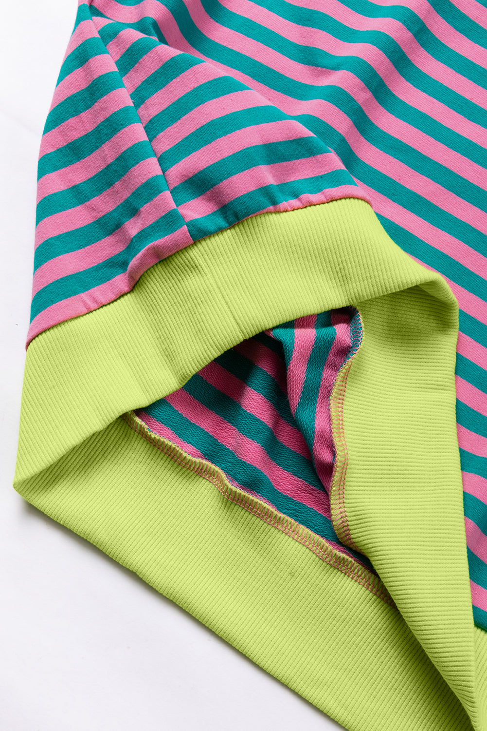 Green Stripe Contrast Edge Oversized Sweatshirt