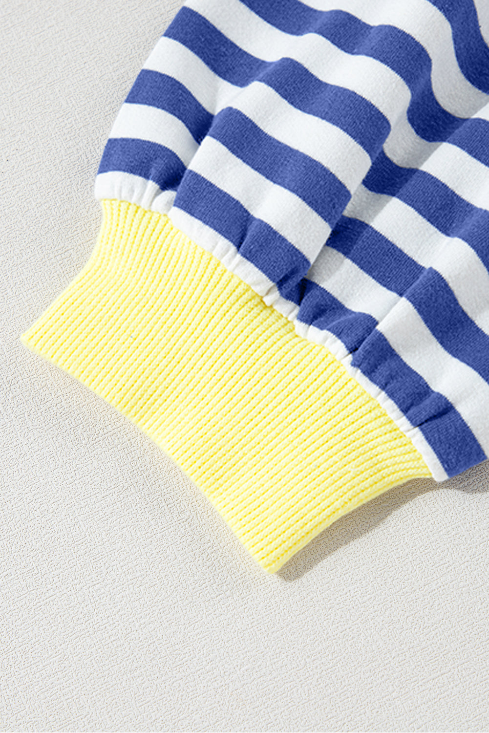 - Effortlessly stylish, the sweatshirt combines casual charm with a bold striped design and eye-catching contrast binding for a unique look.