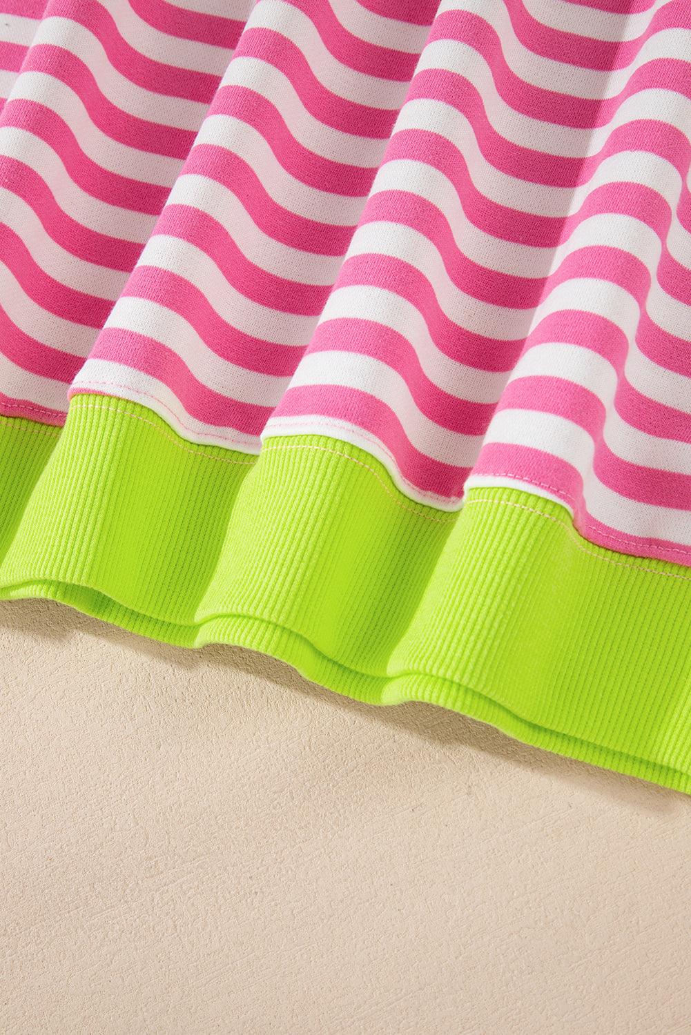 Rose Red Striped Contrast Trim Drop Shoulder Sweatshirt