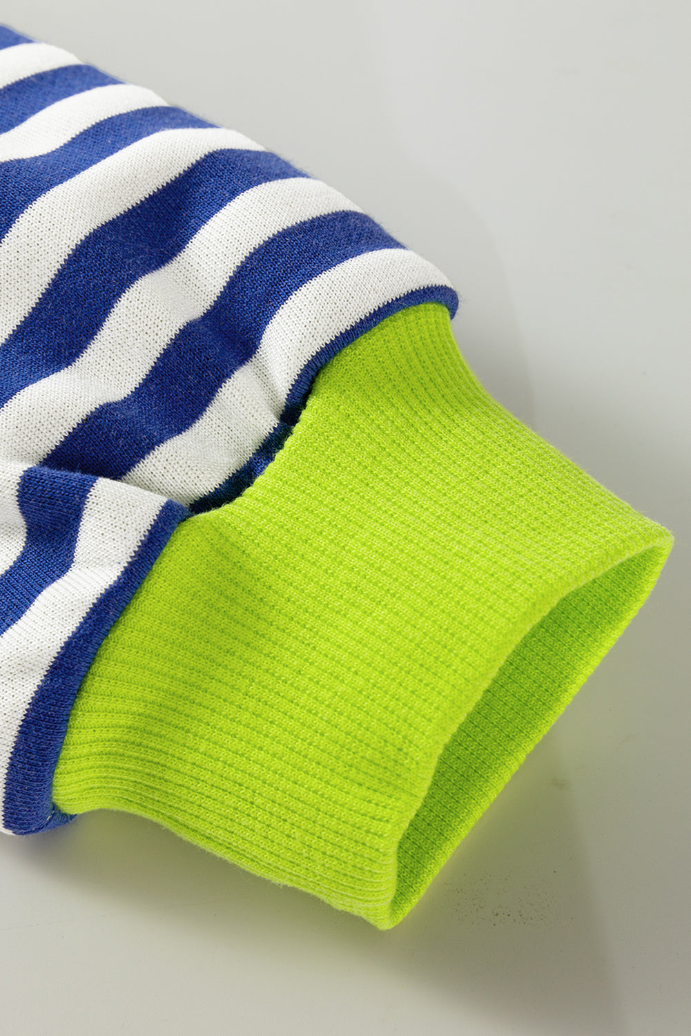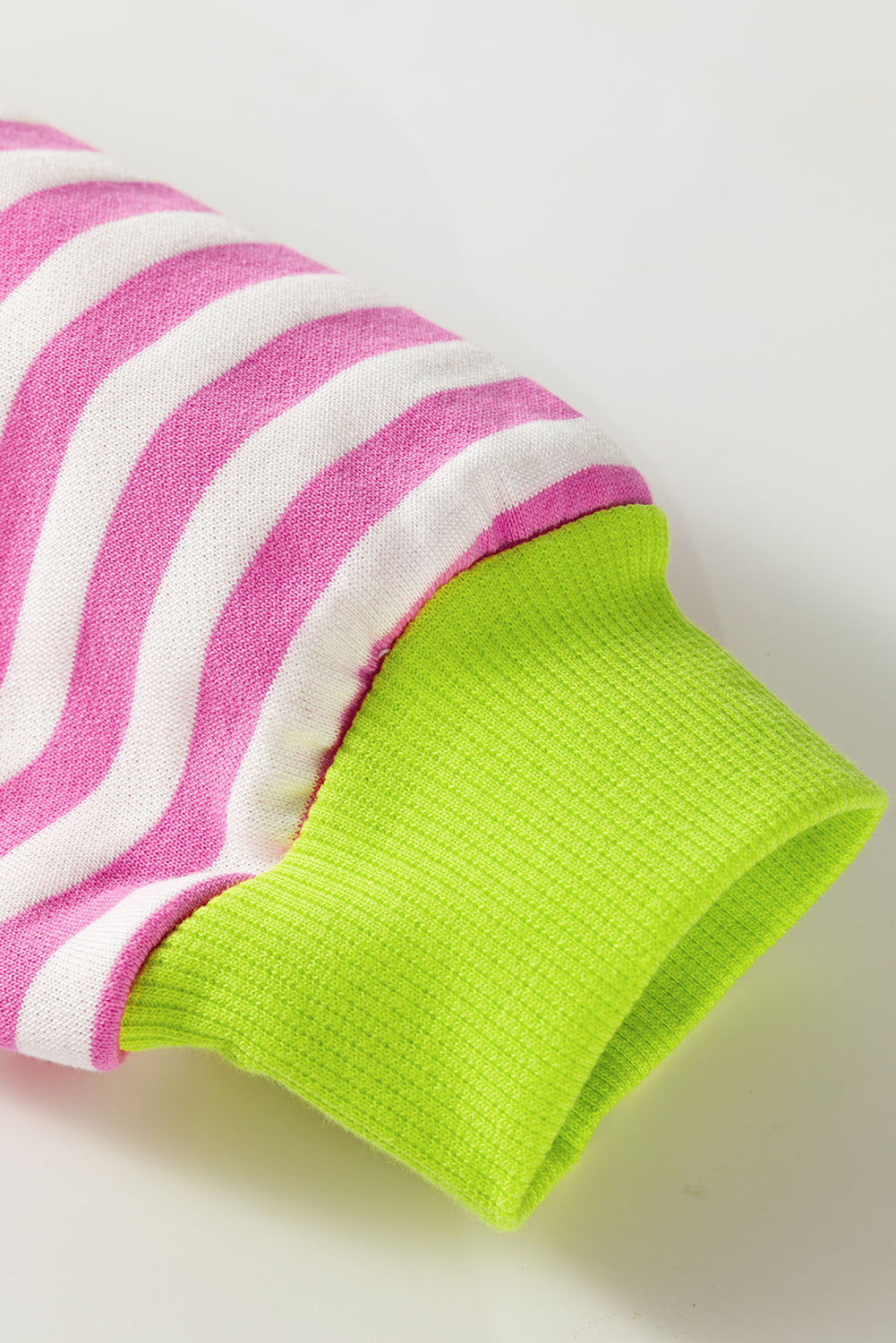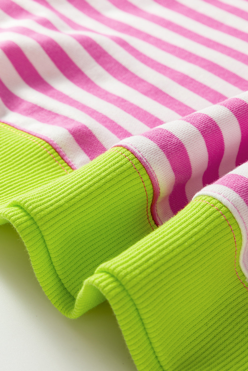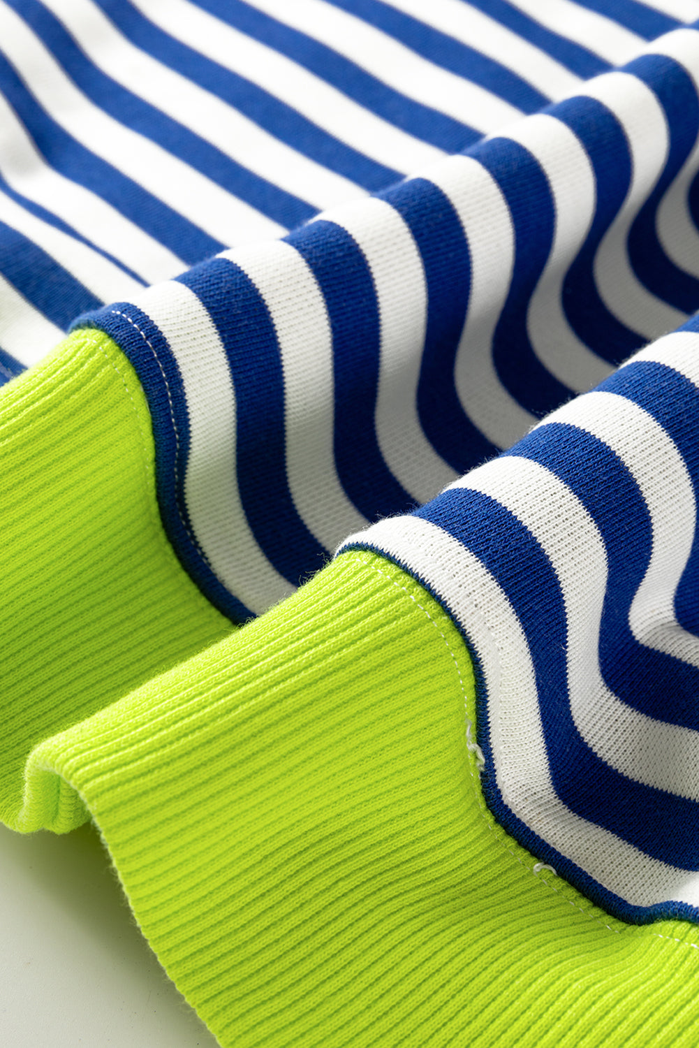 White Stripe Striped Contrast Ribbed Trim Crossed Stitch Drop Shoulder Sweatshirt